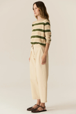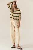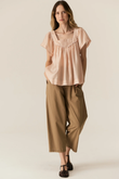The Avrid Barrel Pant by POL Clothing is a must-have for your summer wardrobe. Crafted from crisp cotton with a paper-touch feel, these pants feature an on-trend tapered silhouette that adds a modern twist to casual looks. With a flat waistband at the front and an elasticated panel at the back, they offer comfort and ease, inspired by the popular Raydel/Carsen Denim Pant. The hip pockets and rounded patch pockets on the back with faux flap detail add functional style, while the single pleat on the front of each leg adds a touch of sophistication.