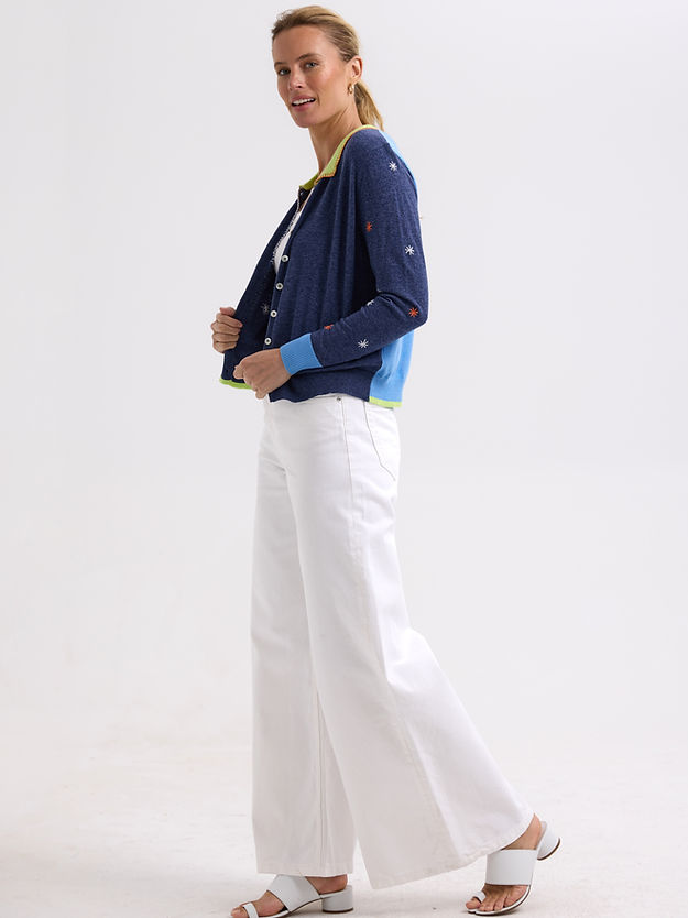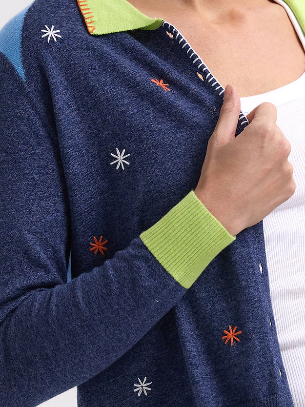 blossoms hand-work cardi - denim
