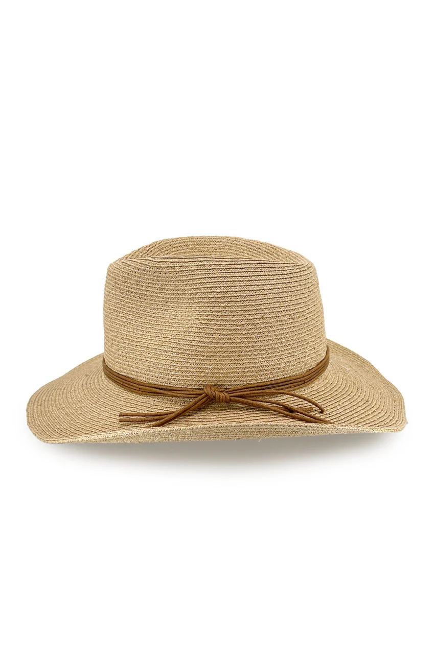 A multi-strand leather band, knotted effortlessly at the side, adds an earthy, artisanal touch. With built-in ComfyFit for a secure, custom fit and UPF50+ sun protection, the Brampton is as practical as it is stylish.