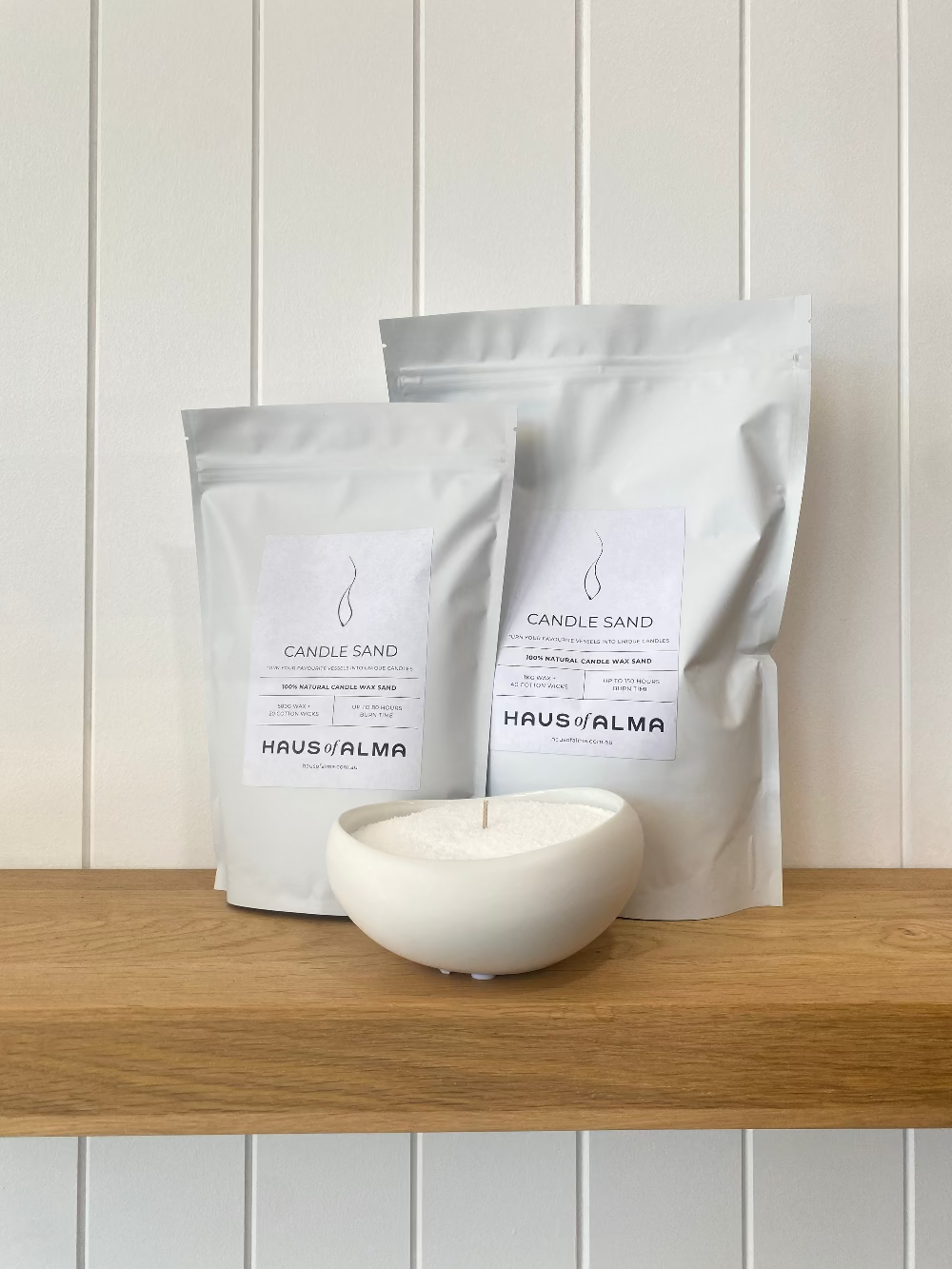 Create your own candle with ease using Haus of Alma's versatile Candle Wax Sand.
