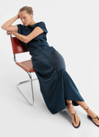 The Caroline Dress from Morrison is crafted from softly draped crushed acetate, with a clean round neckline, finished with a delicate keyhole and button closure at the back. Centre front and back seams create a streamlined silhouette, with gentle gathers forming at the side waist when worn to enhance shape. Finished at a midi length, this neatly fitted style balances modern elegance with understated detail.