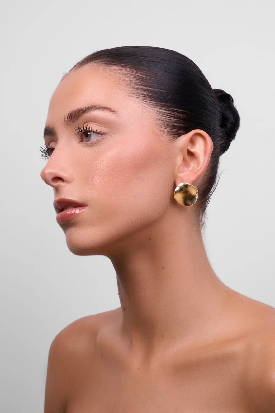 The Chloe Earring by Liberte features a modern, polished design with an irregular organic shape that adds a unique and minimalistic touch to any outfit. With a 2.5 cm diameter, these earrings offer a bold yet refined look. Crafted with stainless steel posts and microplated, nickel-free material, they are both stylish and comfortable for sensitive ears.