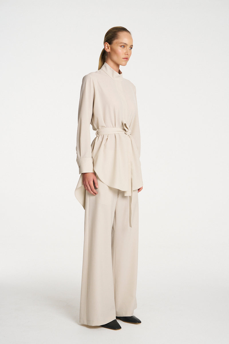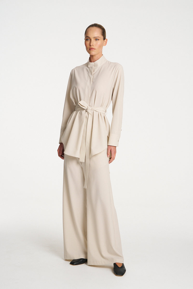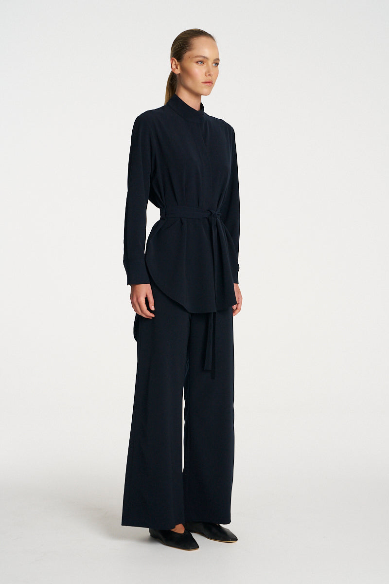 Crafted from Mela Purdie's Flex Weave, a minimalist twill weave with a smooth matte finish. The Cylinder Tunic features a long line silhouette and waist tie offering a versatile yet sophisticated look.
