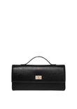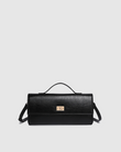 Poised and polished, the Louenhide Delaney Black Clutch is both statement and staple. Crafted from smooth black vegan leather and finished with light gold hardware, she embodies effortless sophistication, equally at a café on a marble café table or tucked underarm on an evening promenade.