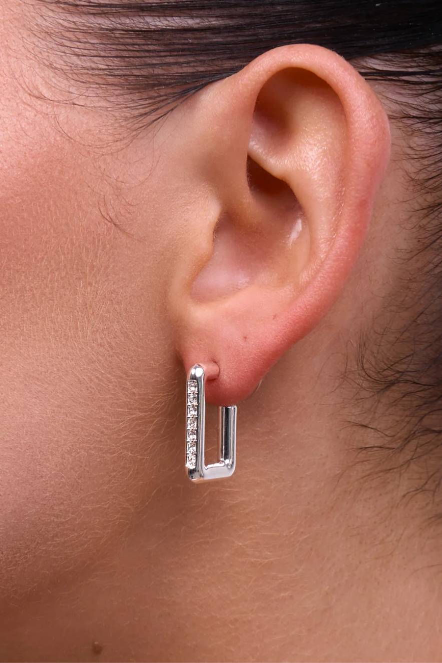 The Eddie Earring by Liberte features a bold geometric hoop design, embedded with sparkling crystals for a touch of glamour. With a 1.8 cm drop, these earrings add modern sophistication to any look. Crafted with stainless steel posts and microplated, nickel-free materials, they offer durability and comfort, making them suitable for sensitive ears.
