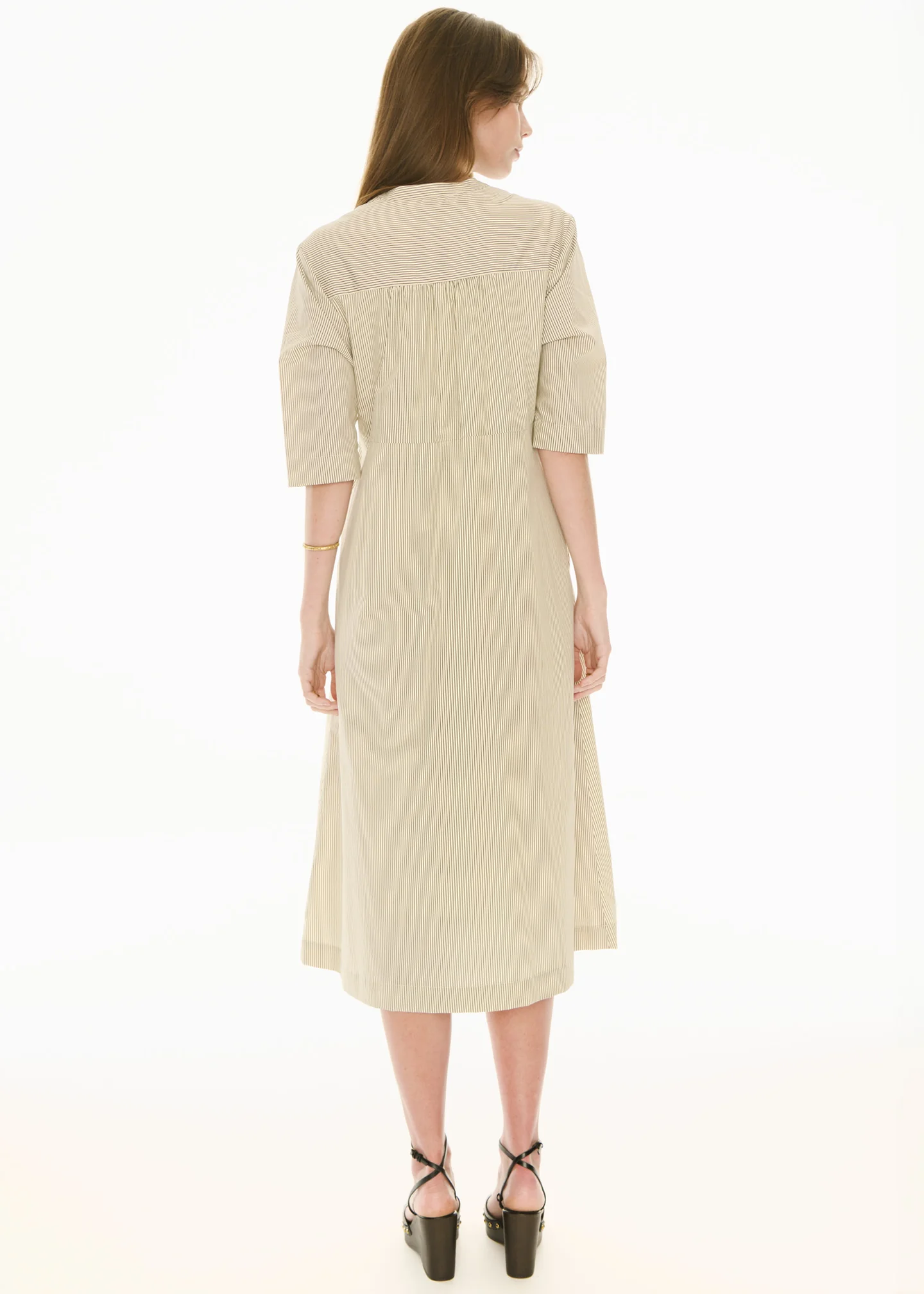 The Fable Shirt Dress in Ivory/Ink features a favourite POL silhouette, now available in a tonal cotton stripe.