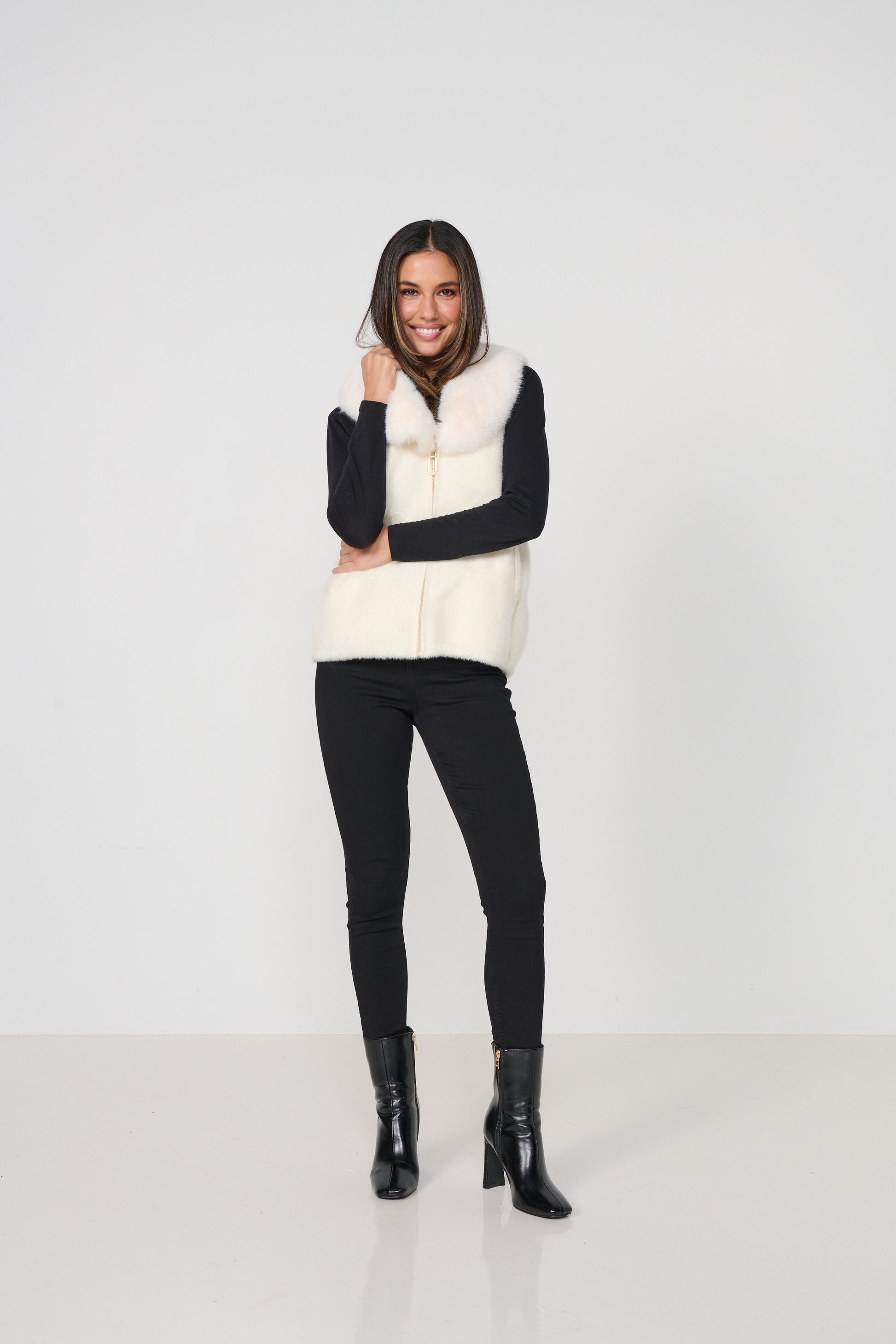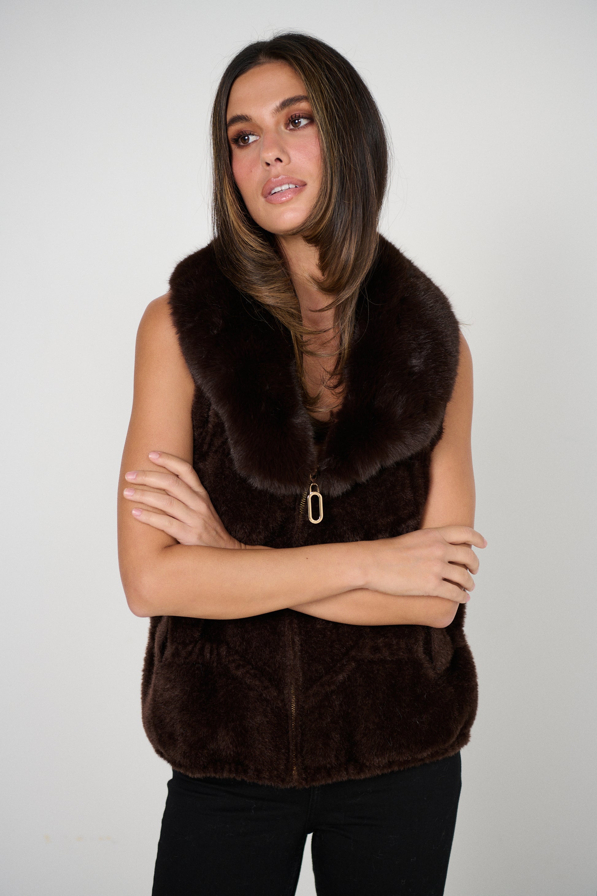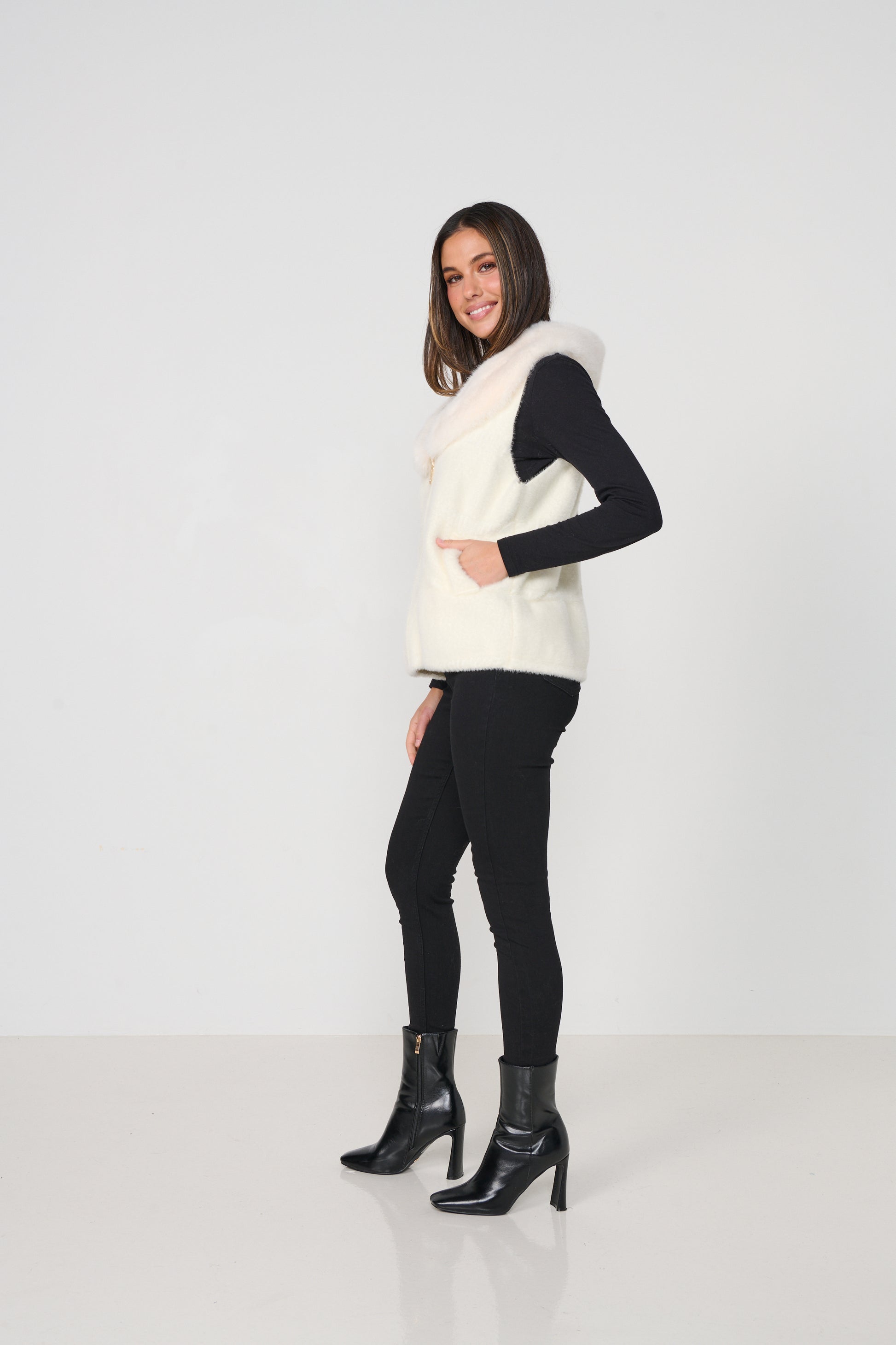 The CAJU Faux Fur Collar Vest in rich chocolate or soft cream is a beautifully textured layering piece designed to elevate cooler-season styling. Featuring a plush faux fur collar and a clean, relaxed silhouette, it adds warmth while bringing a touch of refined luxury to everyday outfits.