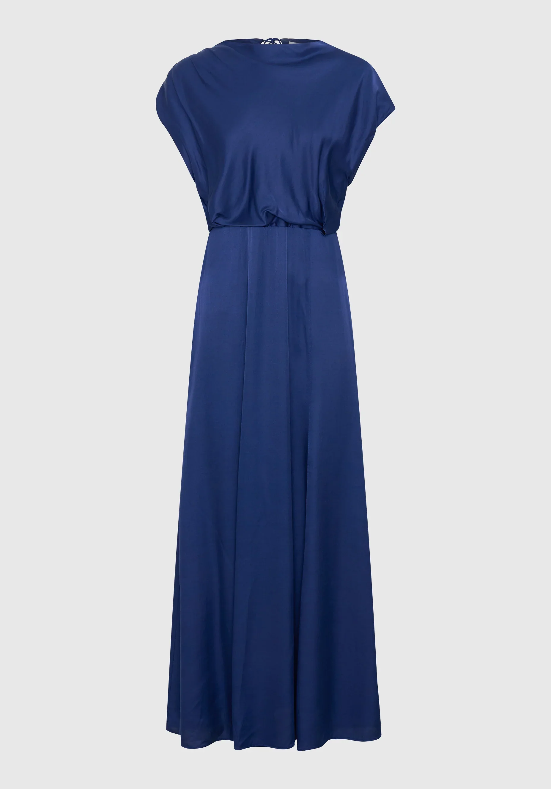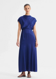The Morrison Fredrika Dress showcases soft structure and elegant detail in a silk blend satin. Featuring a high neck and keyhole tie opening, it’s defined by gathering from one shoulder and waist tucks that create a flattering drape. A slight swing midi hem completes this timeless, feminine silhouette.
