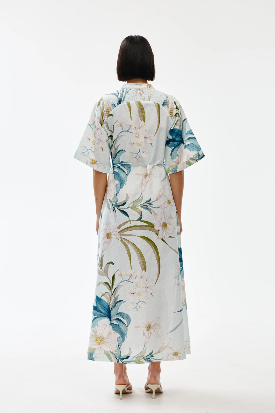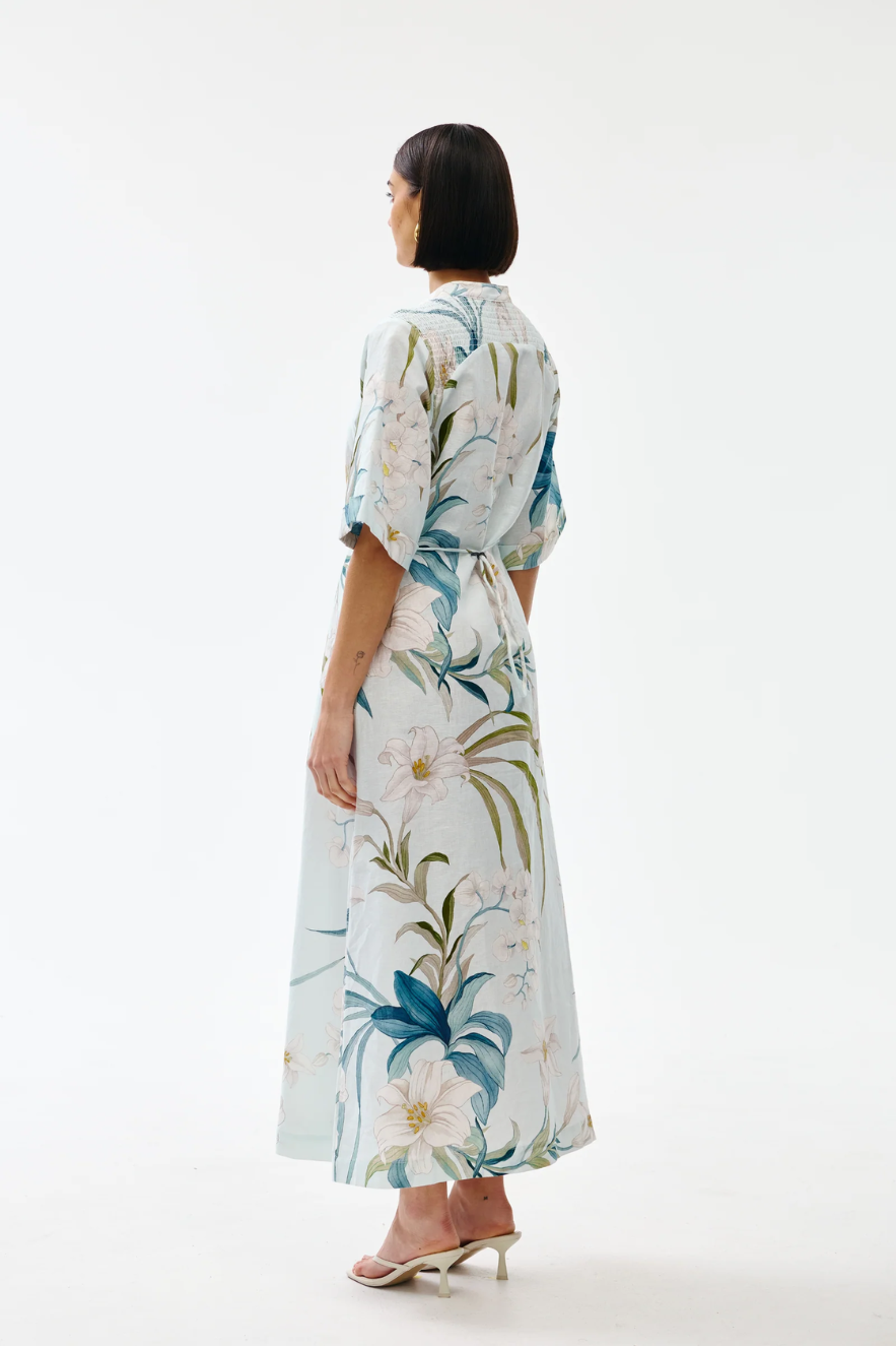 Designed with wide sleeves, in-seam pockets, and a maxi length, the Gigi Dress drapes gracefully, perfect for balmy days and relaxed evenings. Crafted from a cotton + linen blend, it offers breathability, structure, and effortless elegance.