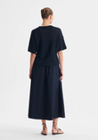 The Morrison Marli Knit Tee is made from a soft cotton-paper blend yarn, designed with a classic round neckline and short sleeves. Featuring contrast stitch panels and ribbed trims at the neckline, cuffs, and hem, it offers a modern boxy fit for effortless layering or standalone wear.