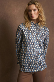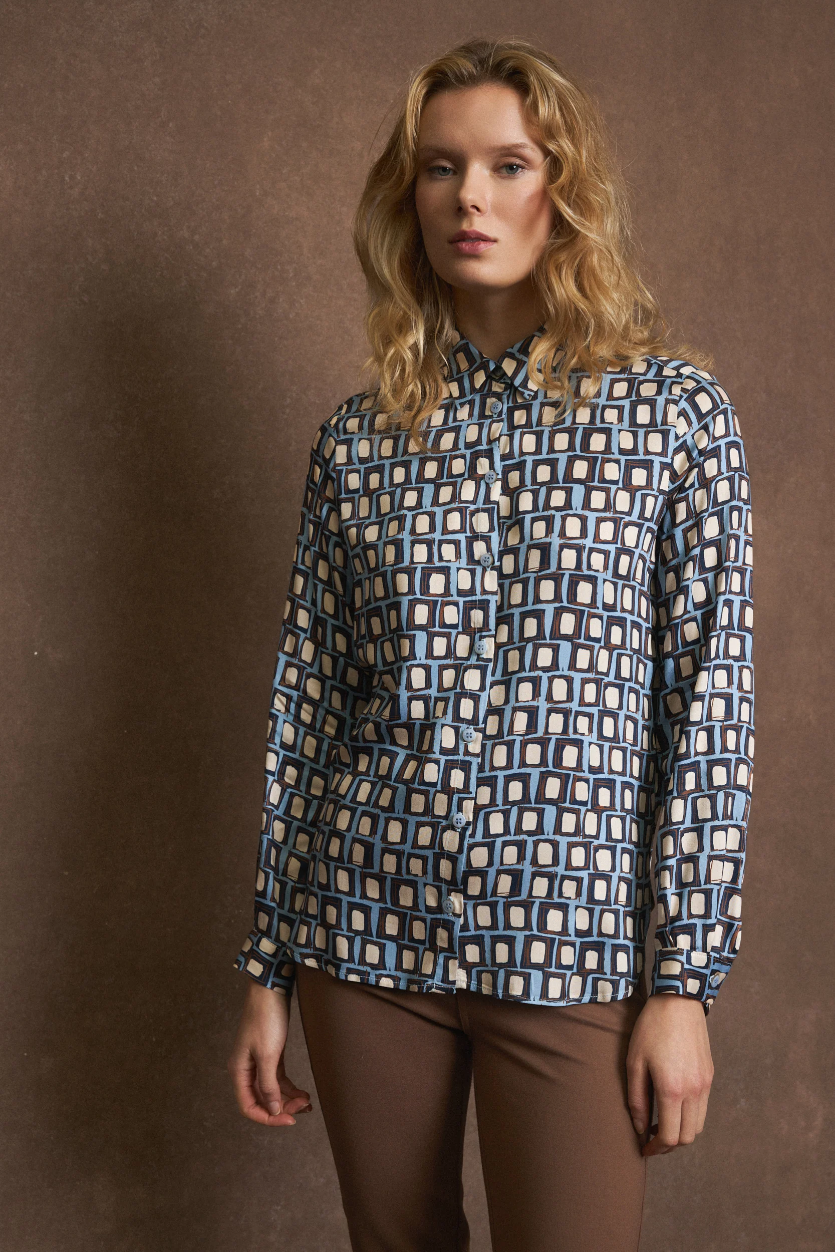 Fluid geometric‑print shirt in a modern, relaxed silhouette
