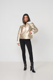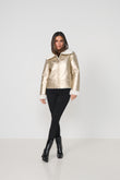 The CAJU Reversible Biker Jacket in Gold brings a modern edge to winter layering with its striking metallic finish and plush faux fur reverse.