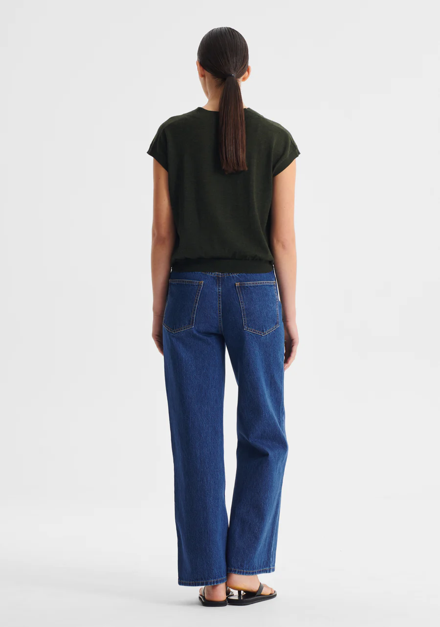 Rib trim at neckline, armhole & hem