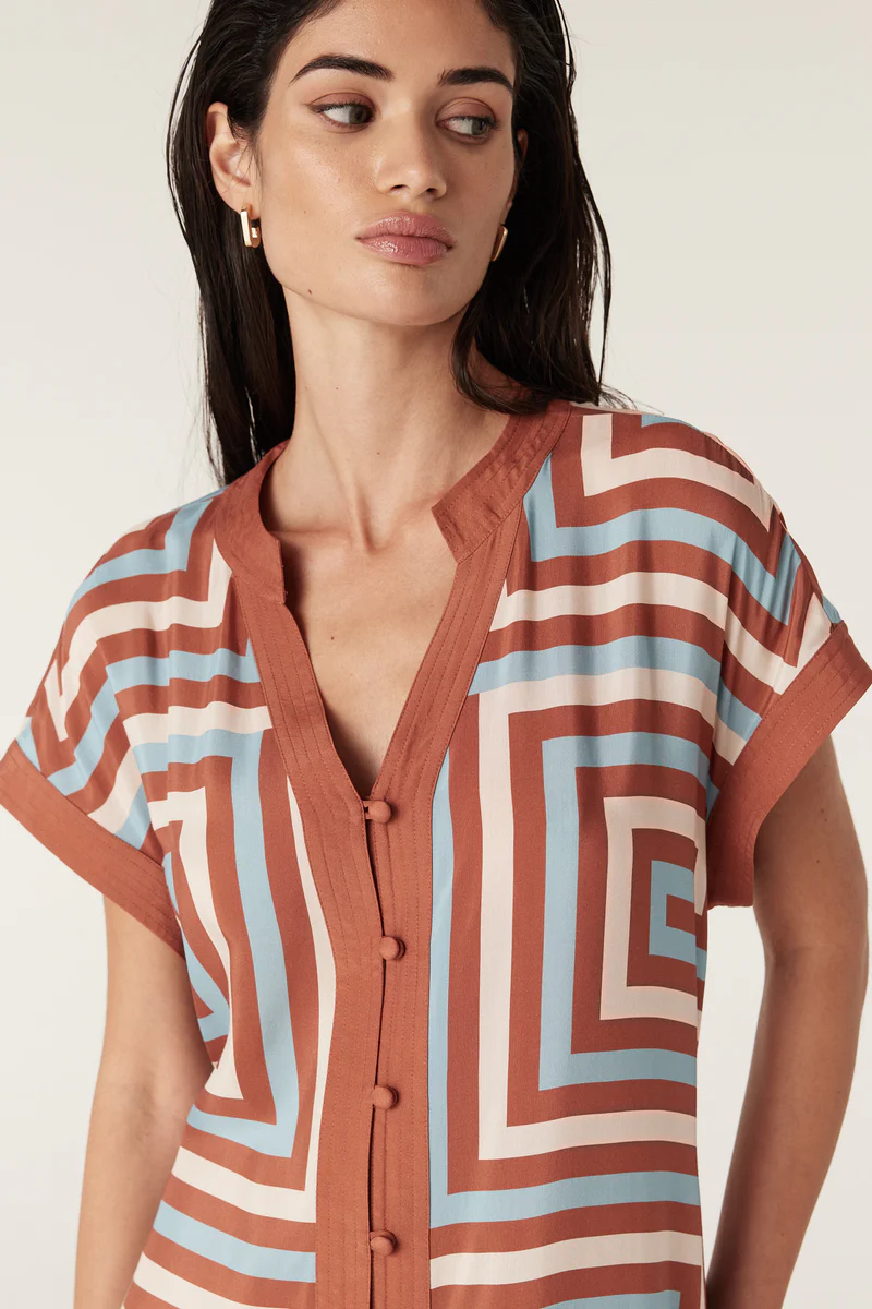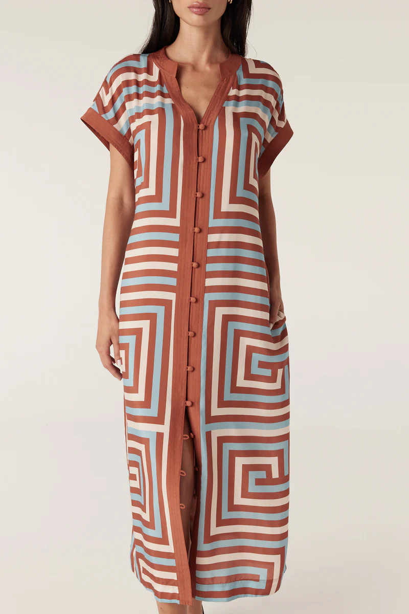 The Cable Melbourne Sierra Dress is a regular fit style made from a lightweight silk blend in an exclusive print. It features a button-through front, side pockets and a contrast fabric tie finished with tassels. A versatile dress designed to stand out with its bold pattern.