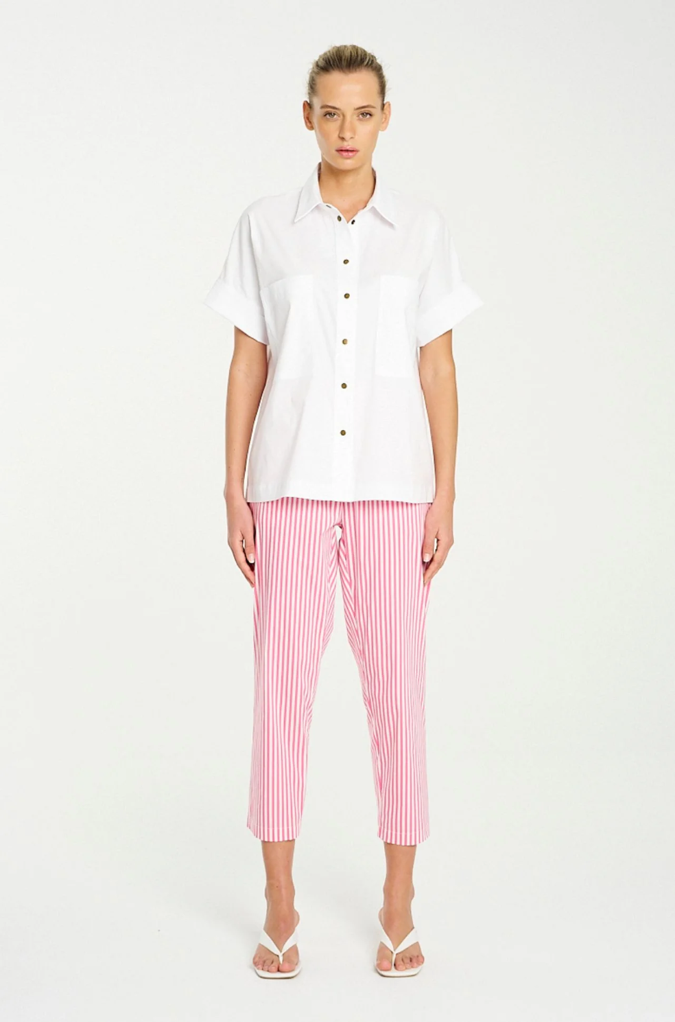 Cut from Microprene. A crisp, cotton rich, high stretch fabrication with a polished finish. The 'Stud Shell Shirt' from Mela Purdie offers a modern wardrobe addition with cargo pockets and stud accents.