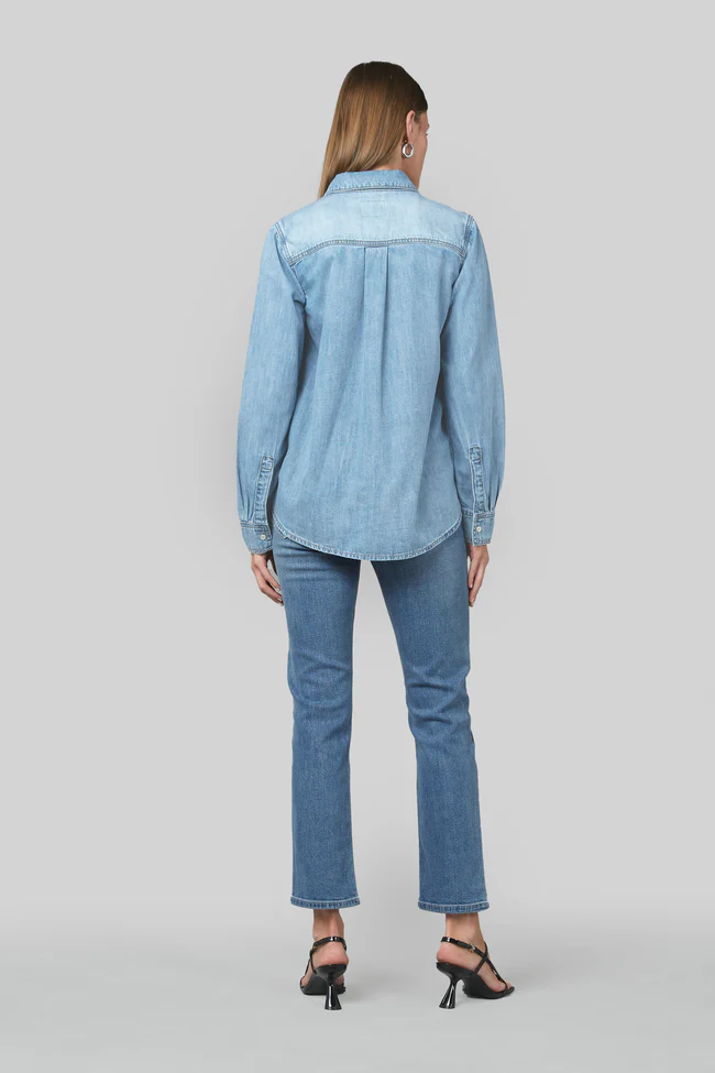 This premium denim shirt for women from Dricoper features a classic western-style, long-sleeved design that is built to last. The shirt's curved bottom hem adds a touch of elegance.