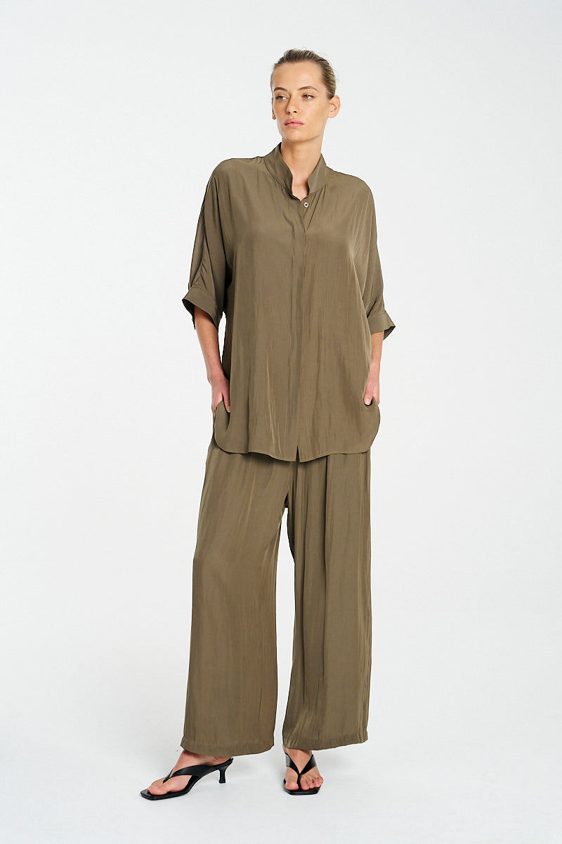 Crafted from Mela Purdie's classic Mache, a fine Denier technical weave with an airflow finish. The 'Villa Overshirt' from mela Purdie offers a relaxed fit silhouette and stand collar, this is a wardrobe essential.